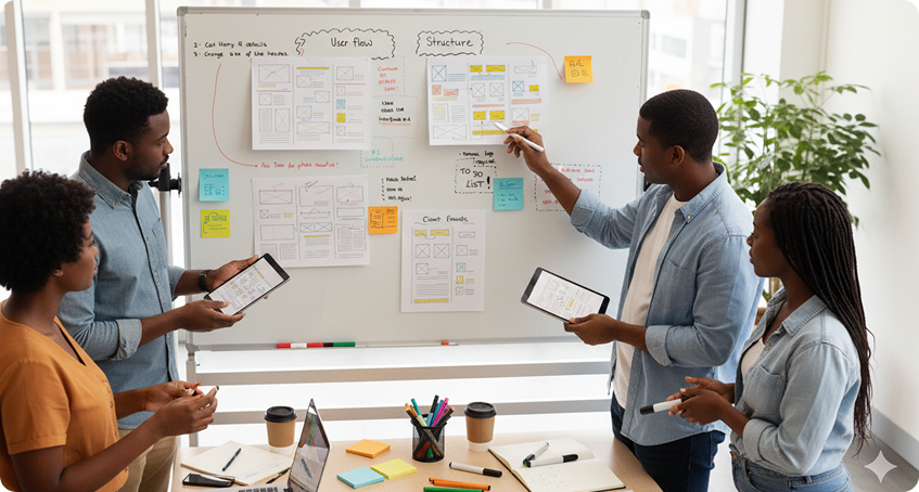 Je suis Fatoumata Bocoum, UI Designer orientée clarté, structure et co-création. J’accompagne les porteurs d’idées qui souhaitent transformer une vision floue en une expérience digitale cohérente, utilisable et simple à comprendre. Mon approche repose sur l’écoute, l’analyse et la transformation progressive : clarifier l’essentiel, organiser l’information, puis concevoir des interfaces avec intention.