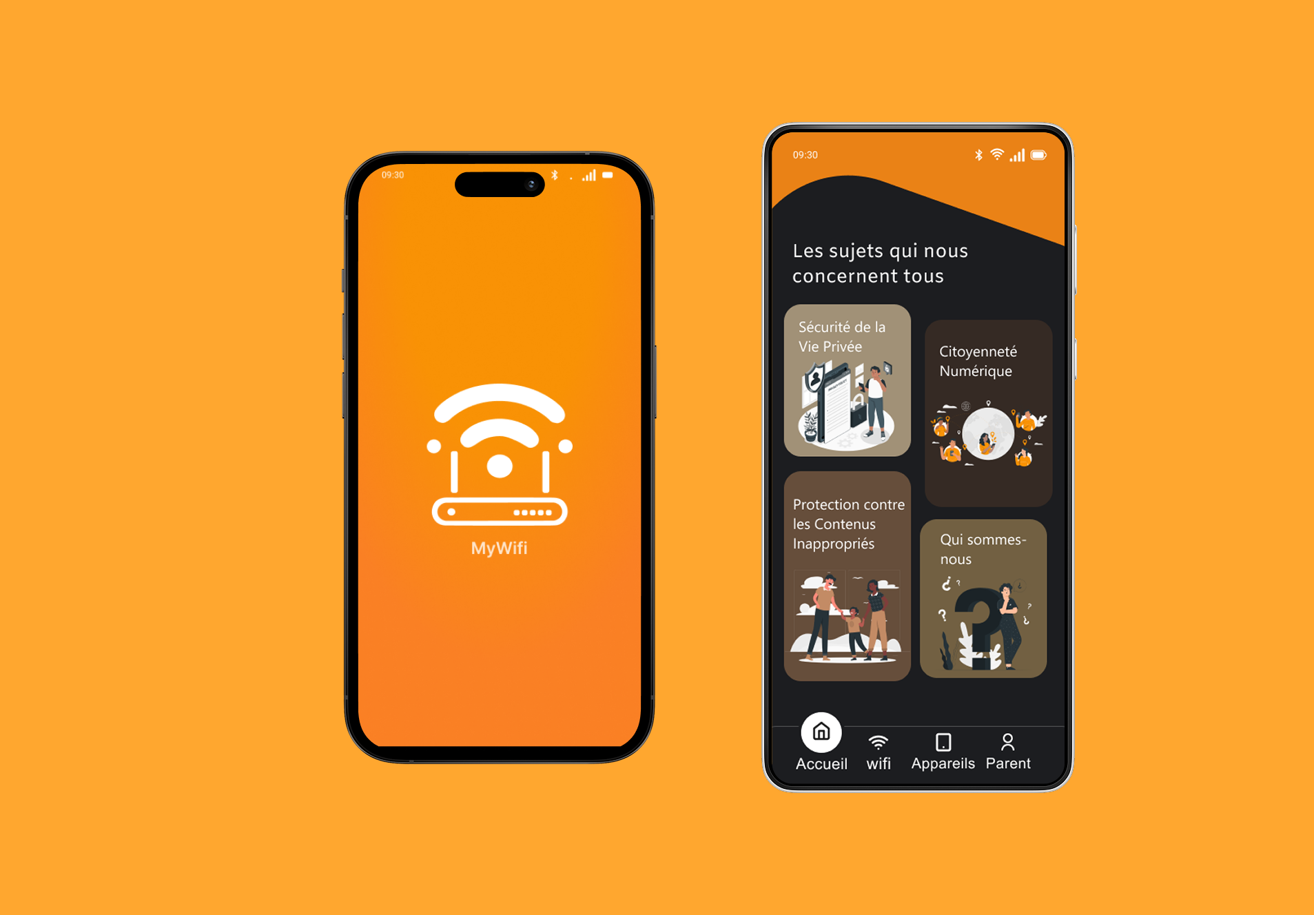 My Wifi est né d’un besoin simple formulé par un ami : mettre en place une application qui permette de gérer facilement un réseau Wi-Fi domestique sans complexité technique.Ce projet, réalisé bénévolement, m’a offert un espace d’expérimentation et de co-création authentique. Il a marqué un tournant dans mon parcours : c’est en travaillant sur My Wifi que j’ai réellement découvert ma capacité à transformer des idées floues en interfaces claires, structurées et utiles. Ce premier projet a posé les bases de ma manière de travailler aujourd’hui : écouter, clarifier, structurer, créer avec intention.
